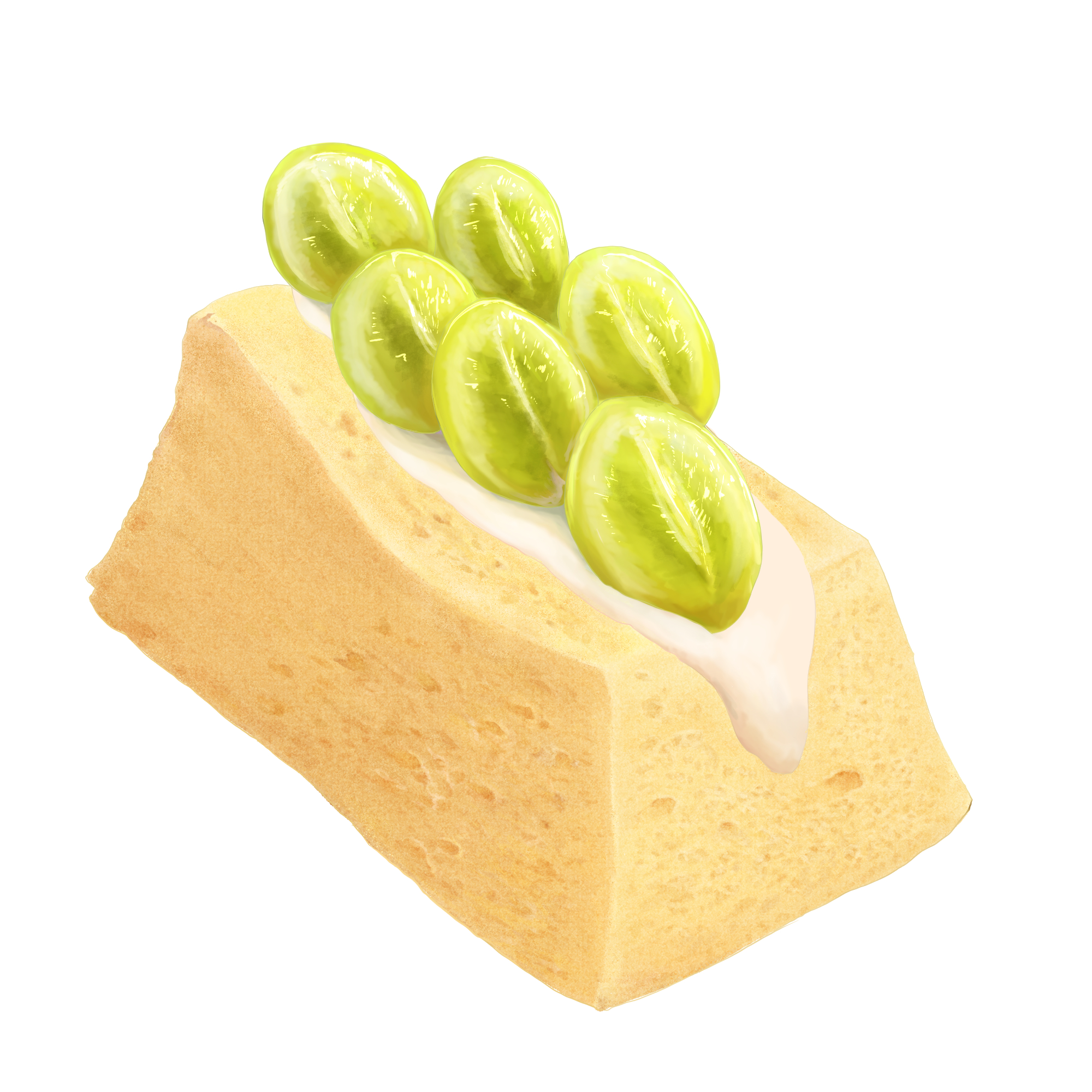 ホームお仕事 マスカットシフォン 2024年11月5日2025年4月14日 SHARE ポスト シェア はてブ LINE 作成年月:2024年11月 イメージ写真からの描き起こしを行いました。 たっぷりのクリームが溢れ出る表現と生地のふわふわさ、マスカットのキラキラを意識しています。