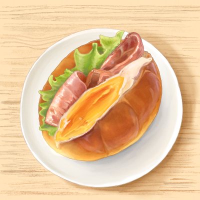 ホームお仕事 ベーコンエッグレタスサンド 2024年5月1日2025年4月14日 SHARE ポスト シェア はてブ LINE 作成年月:2024年5月 卵、ベーコン、レタスそれぞれの質感の違いを意識して作成しました。
